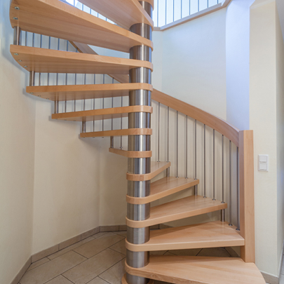 Wangentreppen, Bolzentreppen, Spindeltreppen, Raumspartreppen, Systemtreppen und Stufen auf Beton.