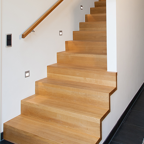 Wangentreppen sind klassische Treppen, bei denen die Stufen seitlich von sogenannten Wangen eingefasst werden. Diese Bauweise bietet Stabilität und vielfältige Gestaltungsmöglichkeiten. Durch Material- und Farbkombinationen können besondere Akzente gesetzt werden. Wangentreppen können offen oder geschlossen gefertigt werden und passen sich flexibel an Ihre Raumgestaltung an.